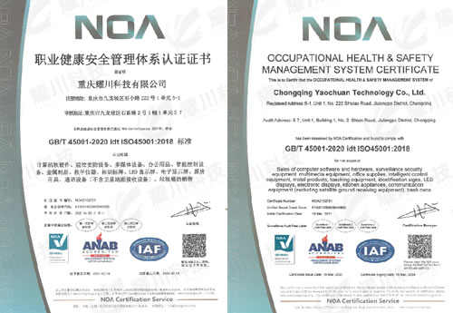 职业健康安全管理体系认证证书